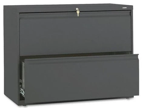 This 42″ wide 2 drawer lateral file cabinet from HON features a counterweight that inhibits tipping.