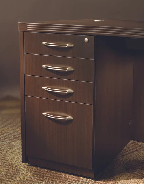 - Pedestals feature dual-purpose pencil drawers for storing supplies or storing laptop computers.