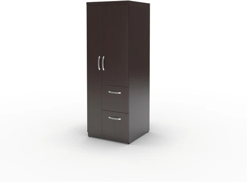 - Includes 7 3/4″ wardrobe section with a hanging rod and 4 adjustable shelves.