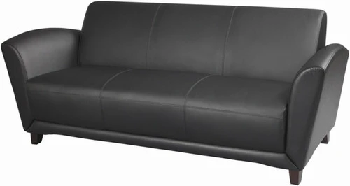 This Italian leather office sofa from Mayline’s attractive Aspire series features top grain black Italian leather on all seating surfaces plus optional foot kits available in different wood finishes to help match any decor.