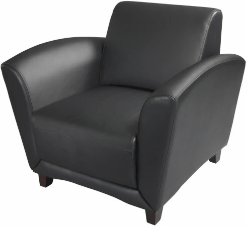 This leather reception chair from Mayline’s Aspire series features top grain black Italian leather on all seating surfaces plus optional foot kits available in different wood finishes to help match any decor.