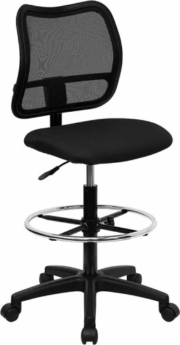 Modern, sophisticated and a lot of fun, the Mid-Back Mesh Drafting Chair looks like office furniture from the future. The mesh back drafting chair has a fun contoured mesh backrest that maximizes ventilation and gives the chair its unique appearance. The design is not only fun to look at, it’s also affordable and the mid-back design adds a moderate amount of support and comfort. The chair’s seat cushion is thickly padded for extended use. The tall chair design is finished with dual wheel carpet casters for improved mobility.