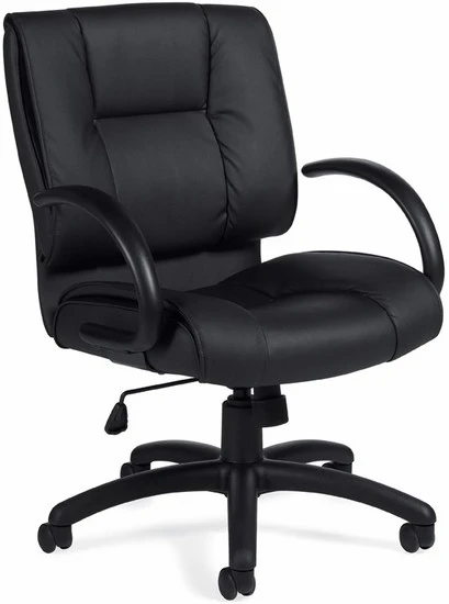 This mid back office chair from Offices To Goâ„¢ features eco-friendly Luxhide leather upholstery. Luxhide consists of bonded leather fibers for strength and durability with a soft faux leather surface.