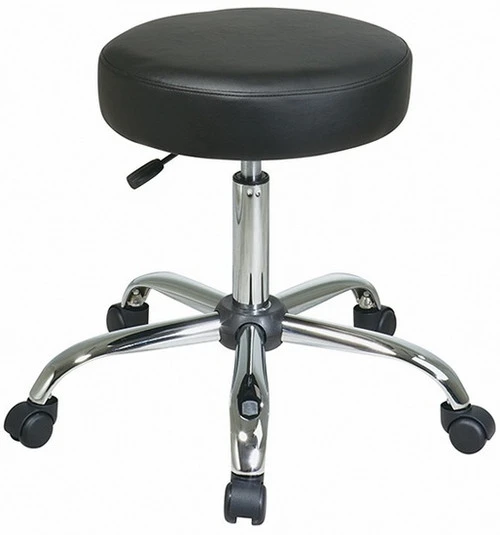 This vinyl and chrome backless stool from Office Star Products is our best-selling exam stool. We imagine it’s because of its classic and quite handsome style, and it’s also comfortable and ruggedly durable. The stool is designed for doctors’ offices, medical labs, industrial settings and educational facilities. The thick padded seat is covered with vinyl and very easy to keep clean. The chrome finished base is extremely sturdy and long lasting.